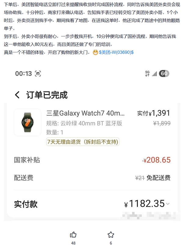 甚至,外卖骑手还能在 618 赚外快,送国补订单赚得更多。因为在购买数码 3C 这类参与国补的产品后,外卖骑手不仅会上门送手机,还会一步步引导用户开机、激活,以及辅助完成国补流程。