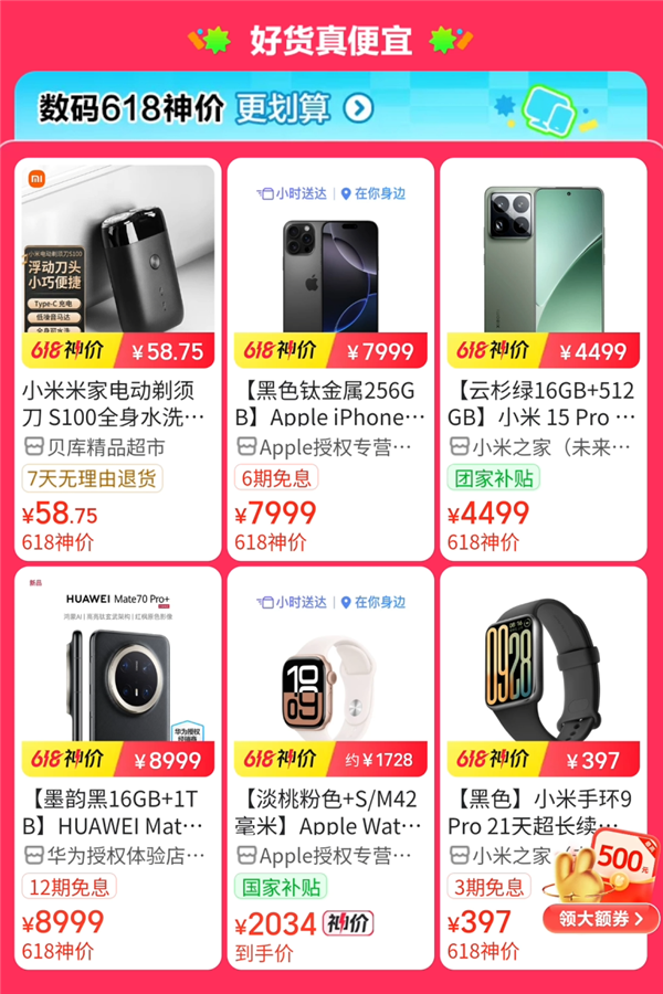 甚至,当下最火爆的数码家电类国补,美团闪购一样无差别参与,最近这两天还刚好是超级国补周。既能让咱以同样乃至于更低的价格下单,还不用忍耐 618 期间拥挤的物流。