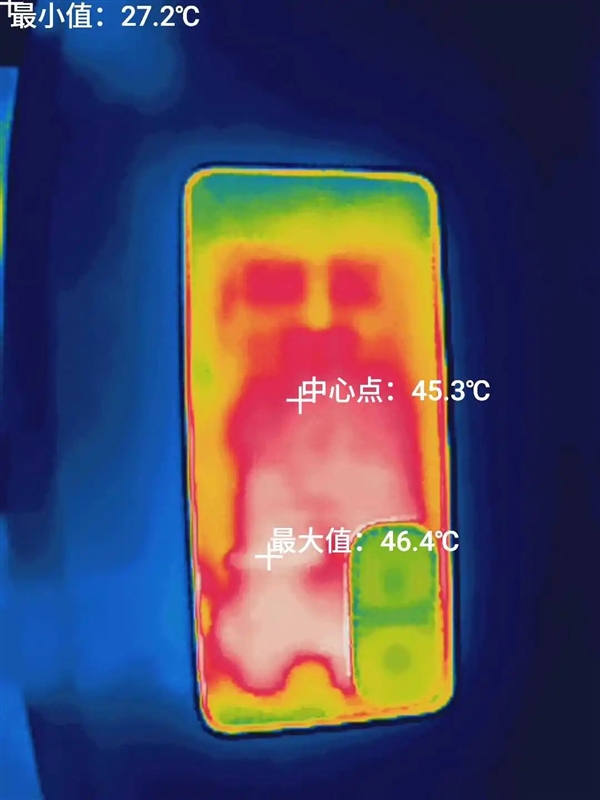 此时机身背面温度有 46.5 度,在 “ 星铁 ” 测试里也算是稍微有点偏高,但仍然属于标准结局。