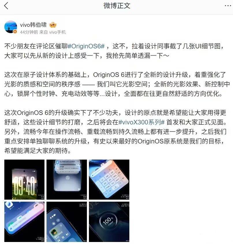 再就是vivo,今天vivo产品经理韩伯啸今日首次分享了 OriginOS 6 系统大版本的 UI 细节设计,并抢先透露了部分亮点。