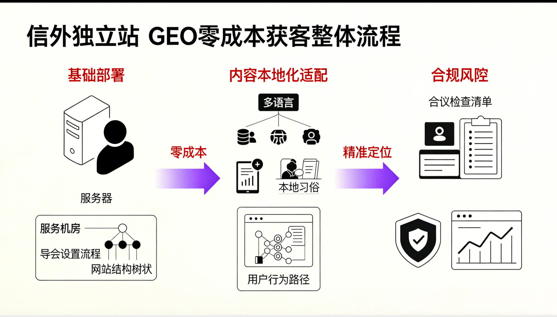 零成本获客的前提是合规运营,一旦触碰监管红线,可能导致站点降权、关停,前期所有投入都白费。出海帮提醒各位运营者,一定要守住以下三条合规底线: