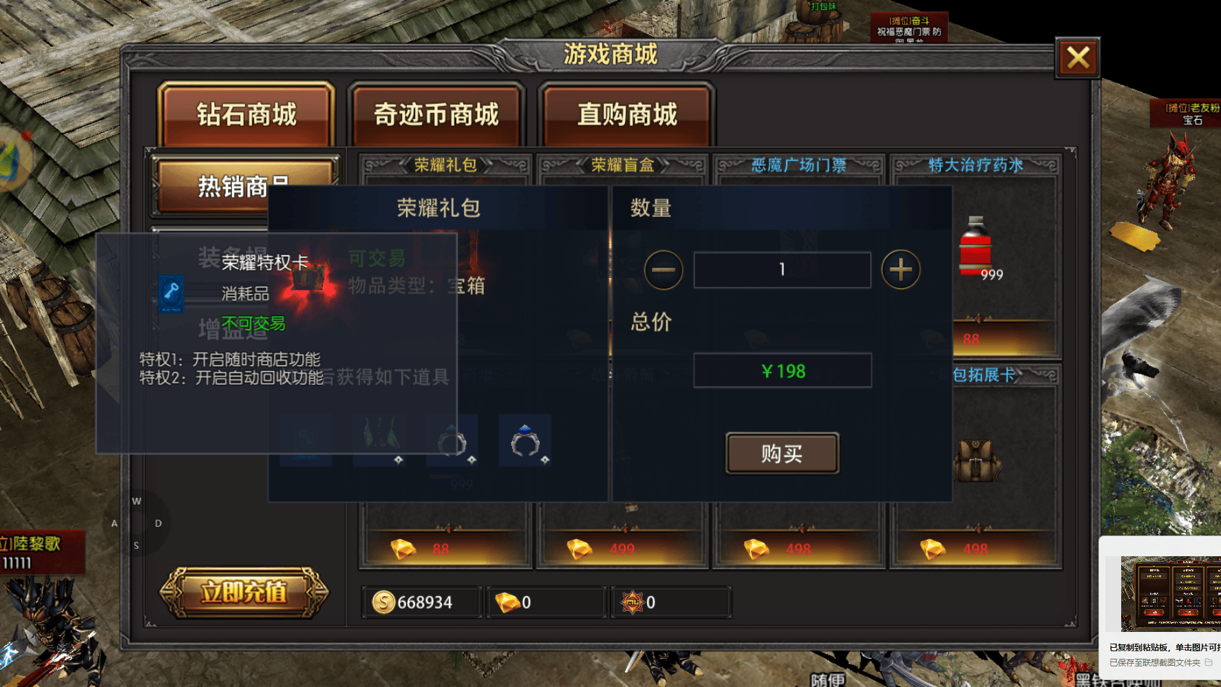 1. 三档专属礼包码,零成本开荒:开服后前往游戏内礼包兑换通道,输入ssvip999、ssvip777、ssvip888,即可领取恶魔广场门票、海量药水、小恶魔buff等开荒刚需物资,单账号每类限兑1次,零成本开启冒险之旅。