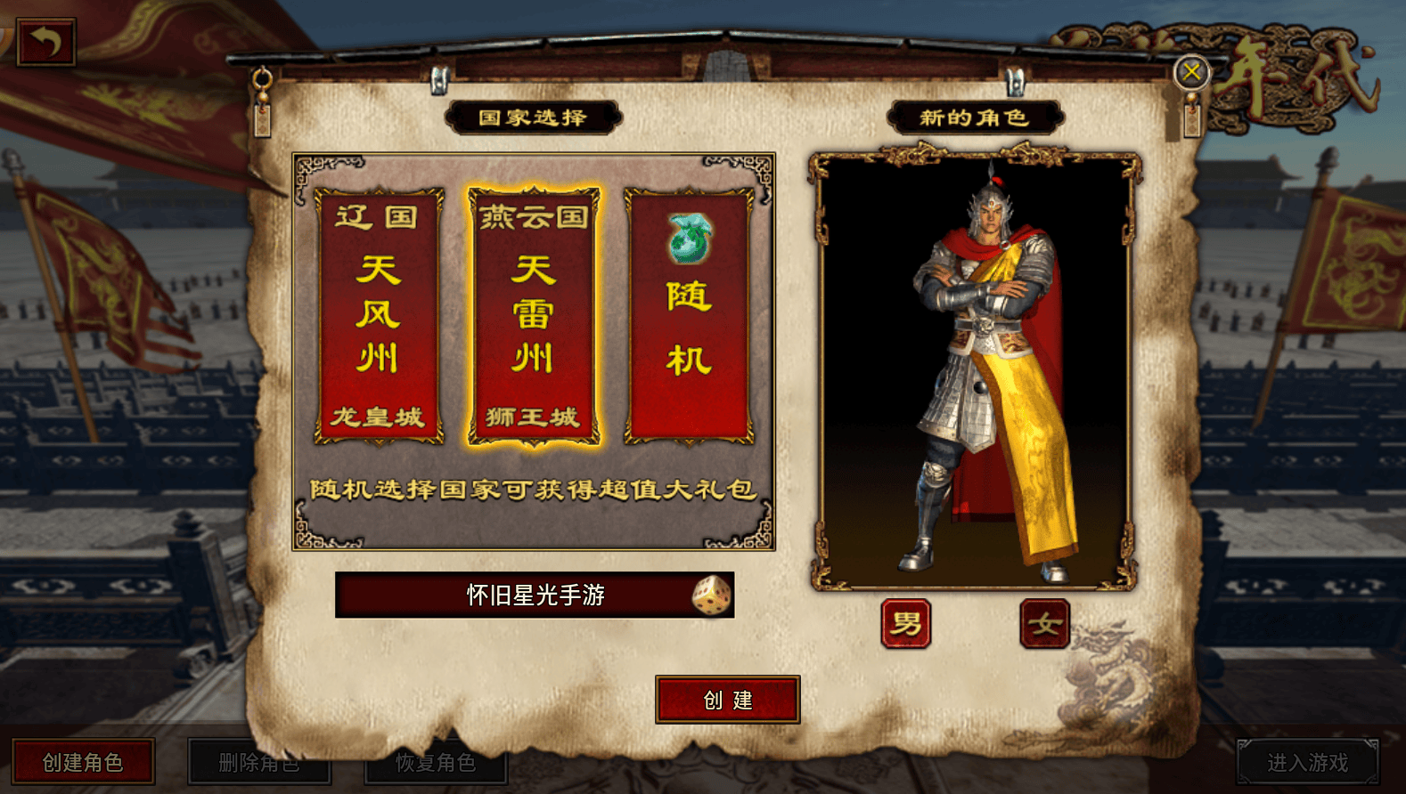 打开手机浏览器,搜索“怀旧星光手游”,进入官方网站(注意辨别官网标识,避免虚假网站);找到《风爆远征英雄年代怀旧服》点击“立即下载”,下载完成后直接安装,安装过程中允许来自官网的安装权限即可!